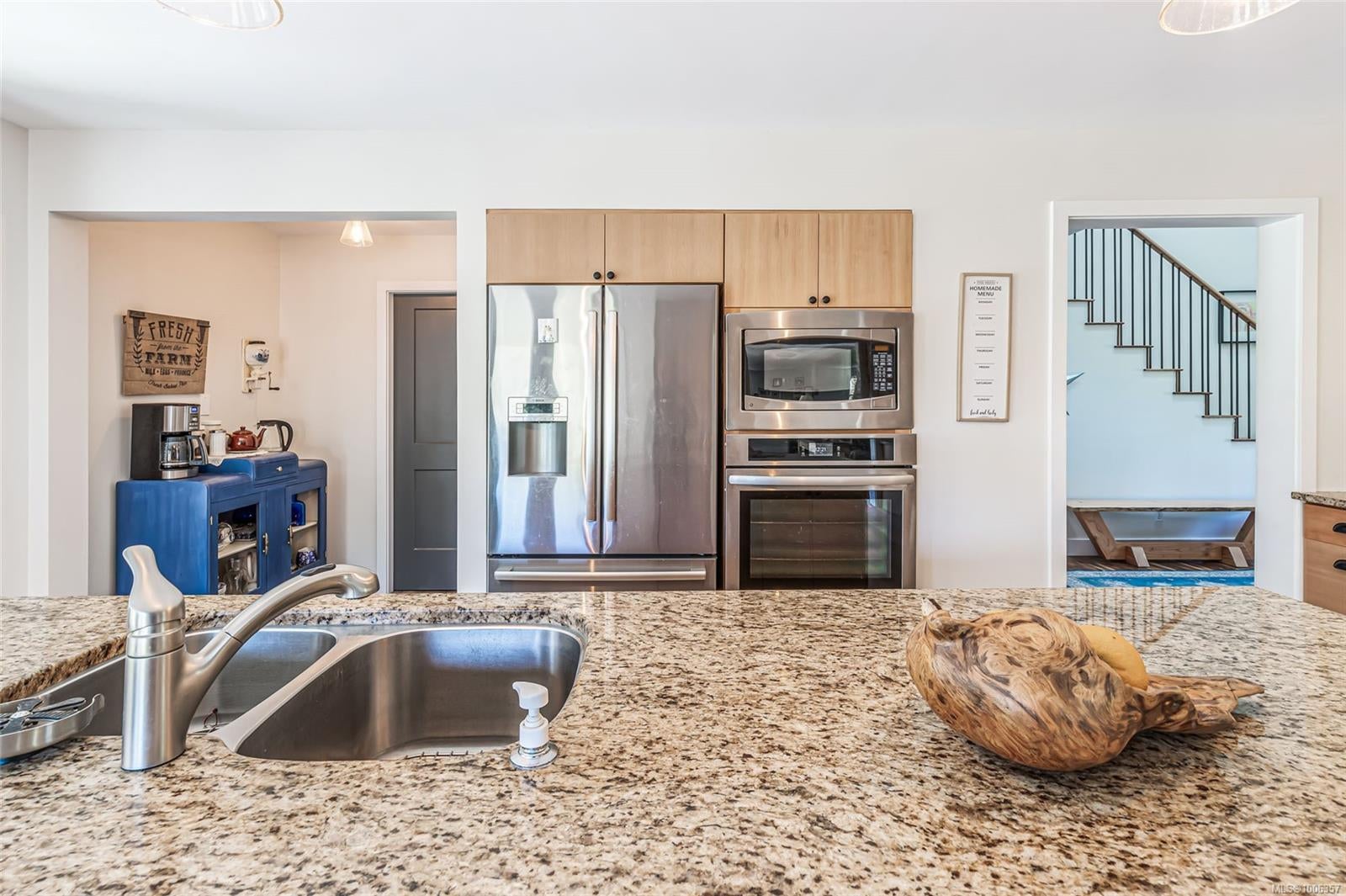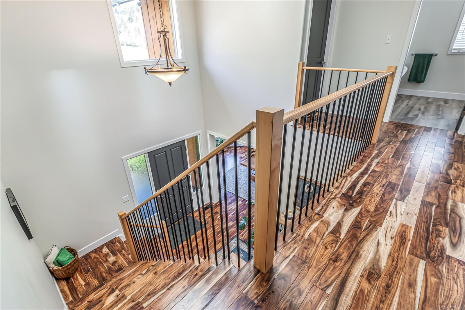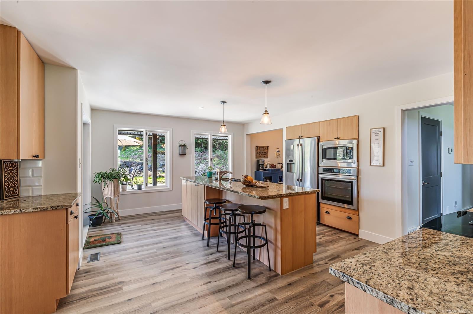 Discover this beautifully renovated, spacious custom farmhouse perfect for modern living and multi-generational families. The home features a main-floor primary suite, five additional bedrooms upstairs, and two convenient laundry rooms—one on each level. High-end acacia wood floors and an open-concept design create a warm, inviting atmosphere for entertaining. Recent updates include a new roof, siding, and more. Set on 31.5 acres of productive farmland, it offers hay fields, fruit and hazelnut trees, and 3+ acres of prime soil for blueberries or other crops. The long driveway leads to a private, mostly level meadow with a gentle rise to the west—ideal for horses or livestock. Excellent water quality from a drilled well and a pond suitable for trout farming add to the farm’s appeal. Located near schools, shopping, and just 12 minutes from Nanaimo.