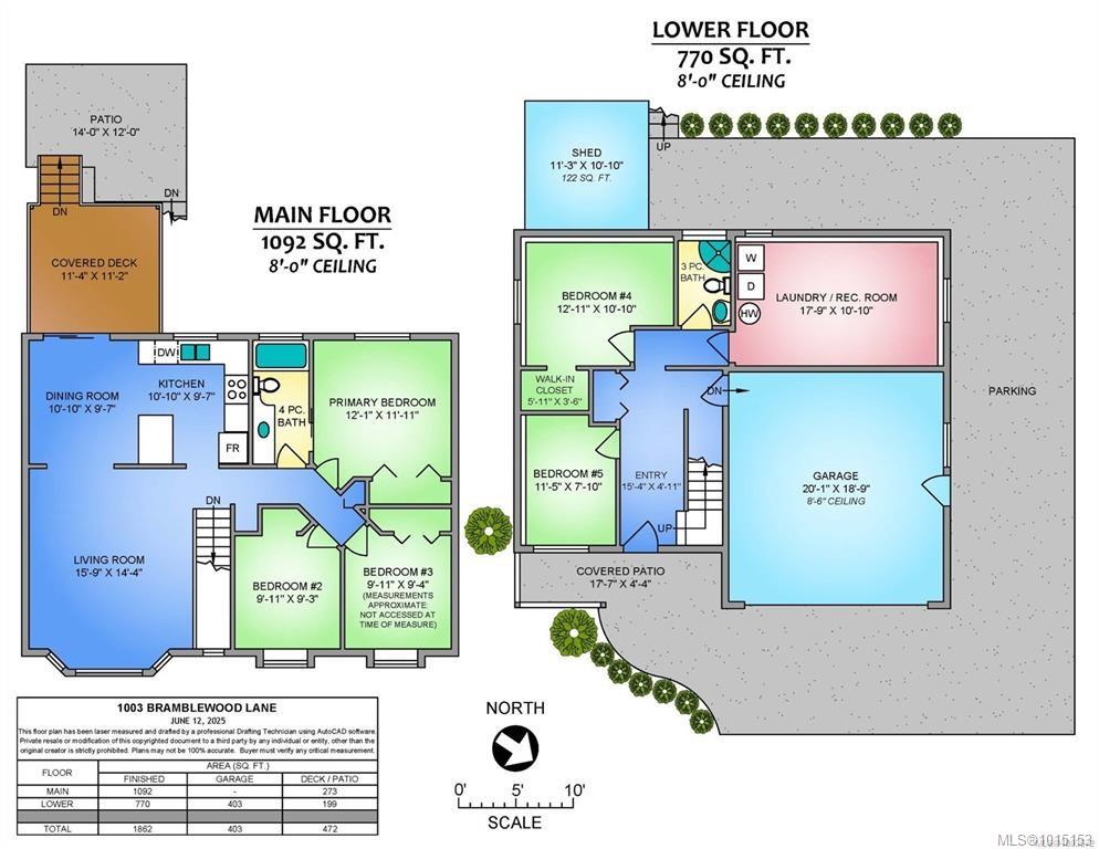 Spacious 1862 sq ft home on a quiet lane in a South Nanaimo family neighbourhood. This 5 bedroom home has all the space you need for a growing family at an affordable price. The main level has the open concept kitchen/dining area with access to the covered deck plus a large family room. 3 bedrooms on this floor including the primary bedroom with access to the main washroom through a cheater-door. Downstairs are two more bedrooms (one without a closet), extra large laundry room with chute from the upstairs bathroom. Double garage with extra storage and shelving. Outside features RV Parking, stone walls, mature plants, and fruit trees. Close to schools, parks, The new Quality foods and many more amenities. All data and measurements are approximate and should be verified by a buyer if deemed important.